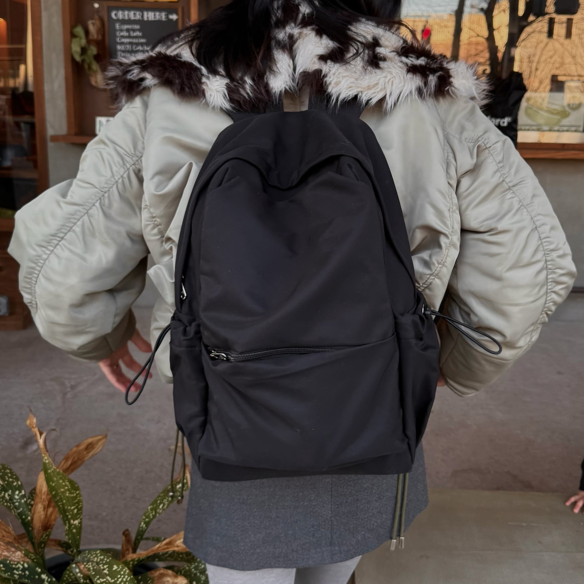 ◼︎ 背面にキャリーオンベルトと収納ポケットが付いています